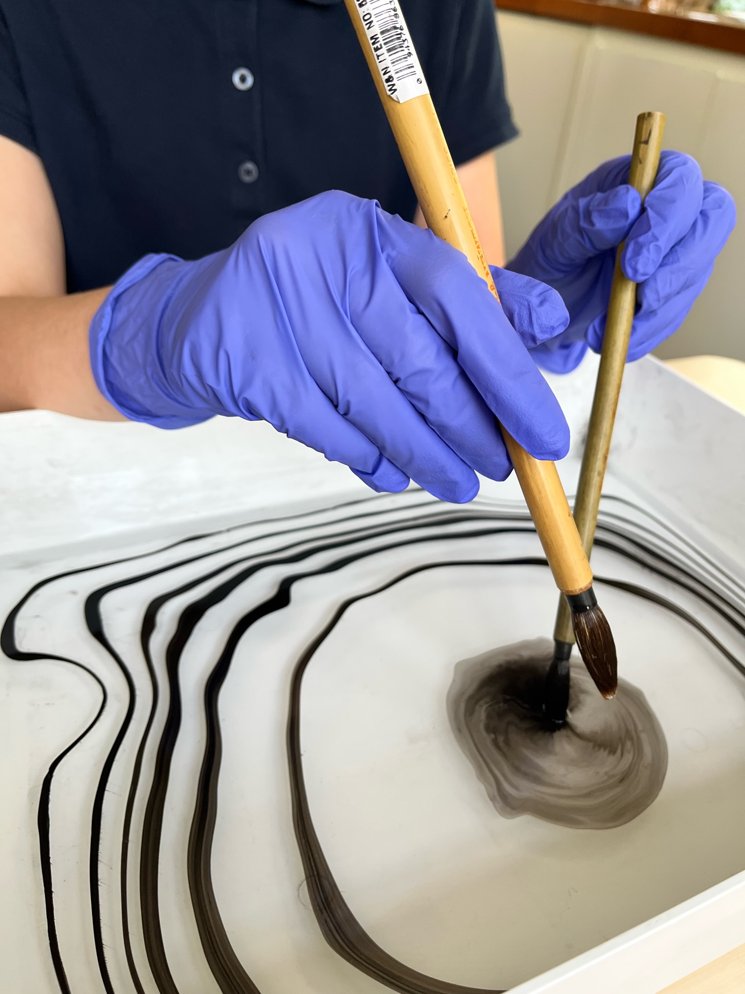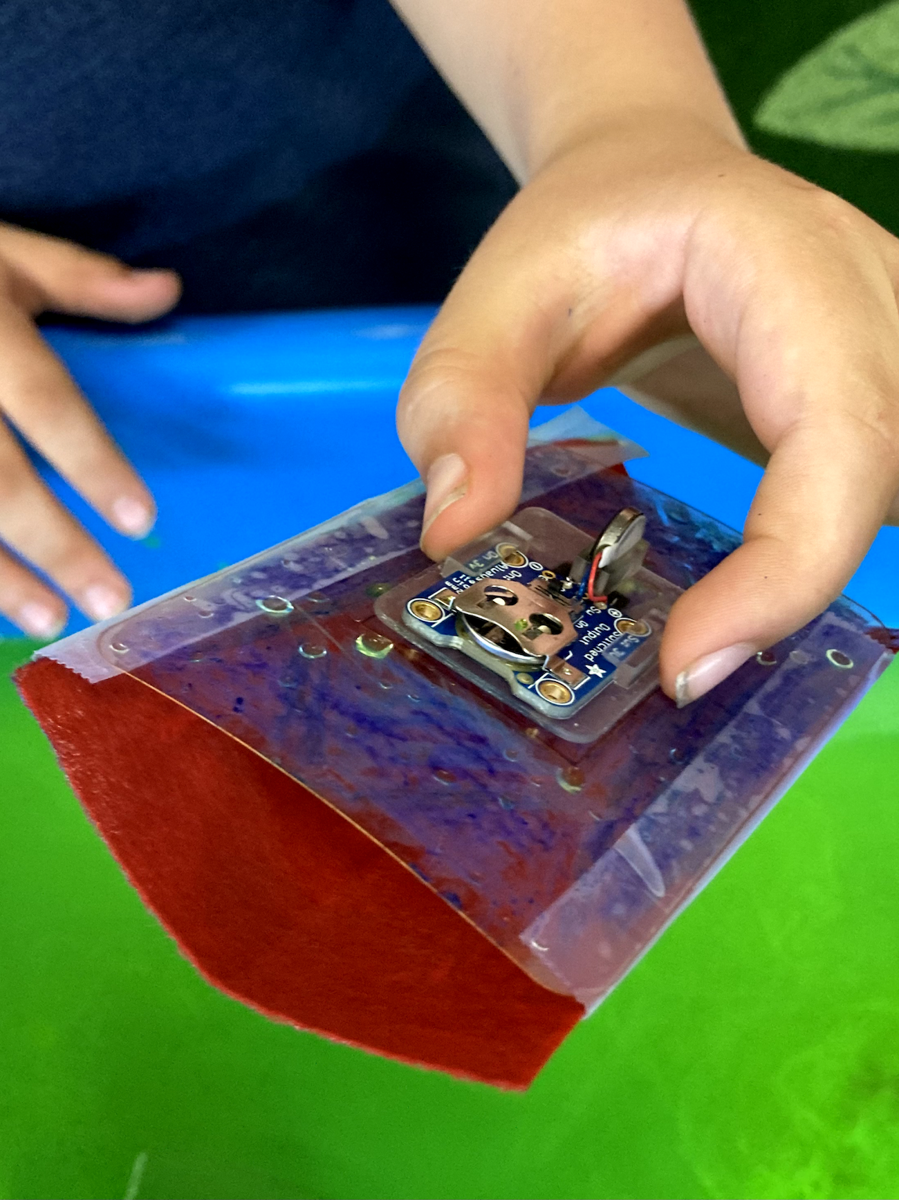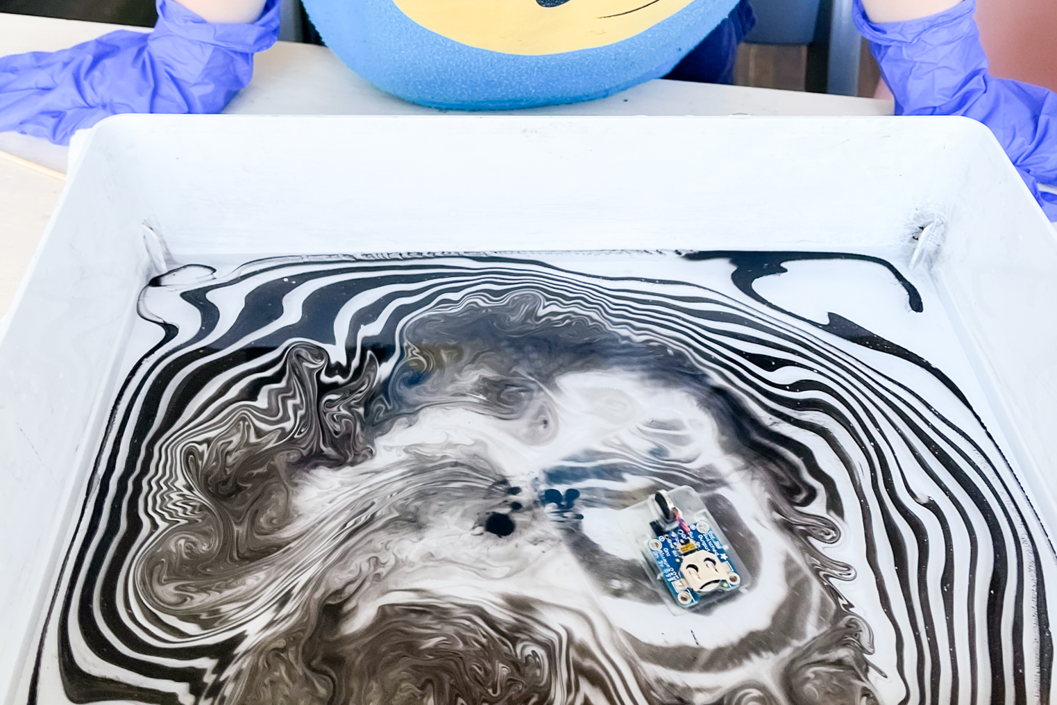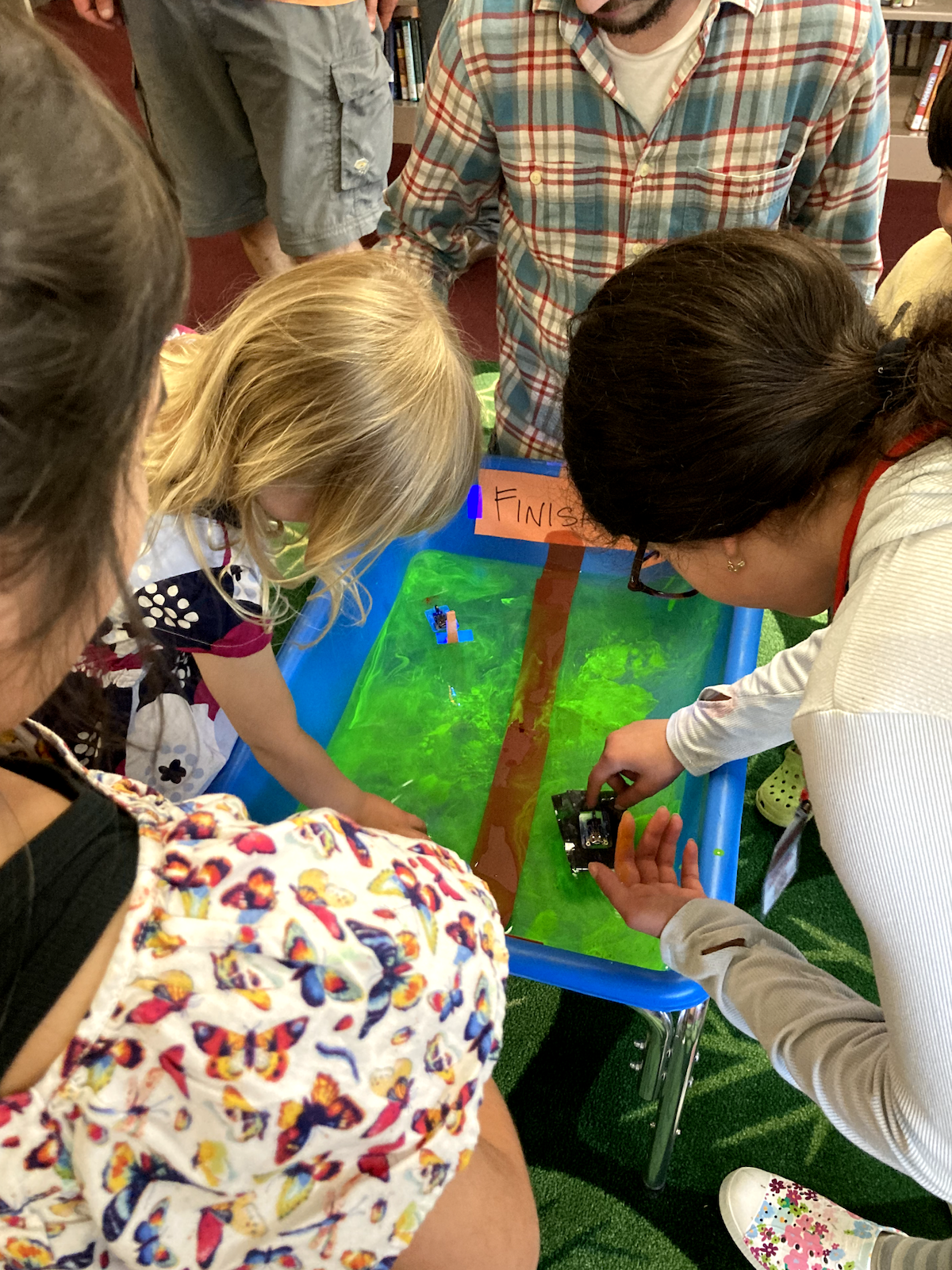 This culminated in a workshop for 10 kids held at the local public community library. Kids built SurferBots and raced them against each other in the water, adding masts + other fun things in hopes for victory! We also used suminagashi - the Japanese water marbling technique - to visualize and capture the beautiful water eddies created by the Surferbot.